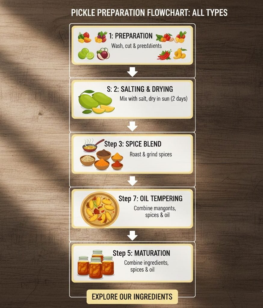 From sourcing premium raw materials to preparing and packing with hygiene and care, we ensure every jar delivers quality and tradition together.